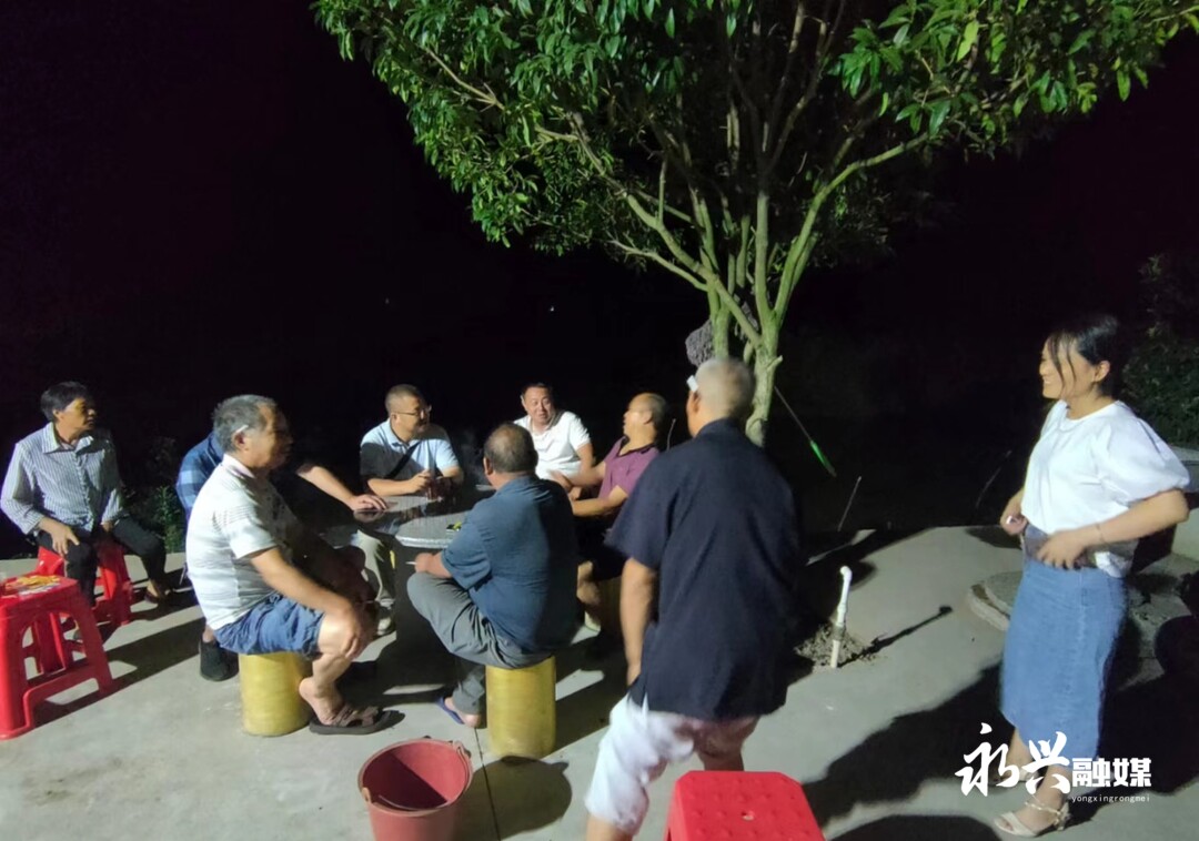 【永兴县融媒体中心9月28日讯】9月26日晚,永兴县柏林镇陈门村村“两委”、乡村振兴驻村工作队、村民代表围坐一起,几把椅子,一壶热茶,开展“线上+线下”农家夜谈,热议民生实事,共话乡村振兴美好愿景。