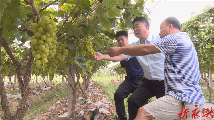 【永兴县融媒体中心8月10日讯】8月10日上午,永兴县融媒体中心直播组工作人员来到湘阴渡街道湘阴村提子产业扶贫基地,为即将启动的第六场“融媒体+扶贫助农”直播销售活动,进行现场踩点。