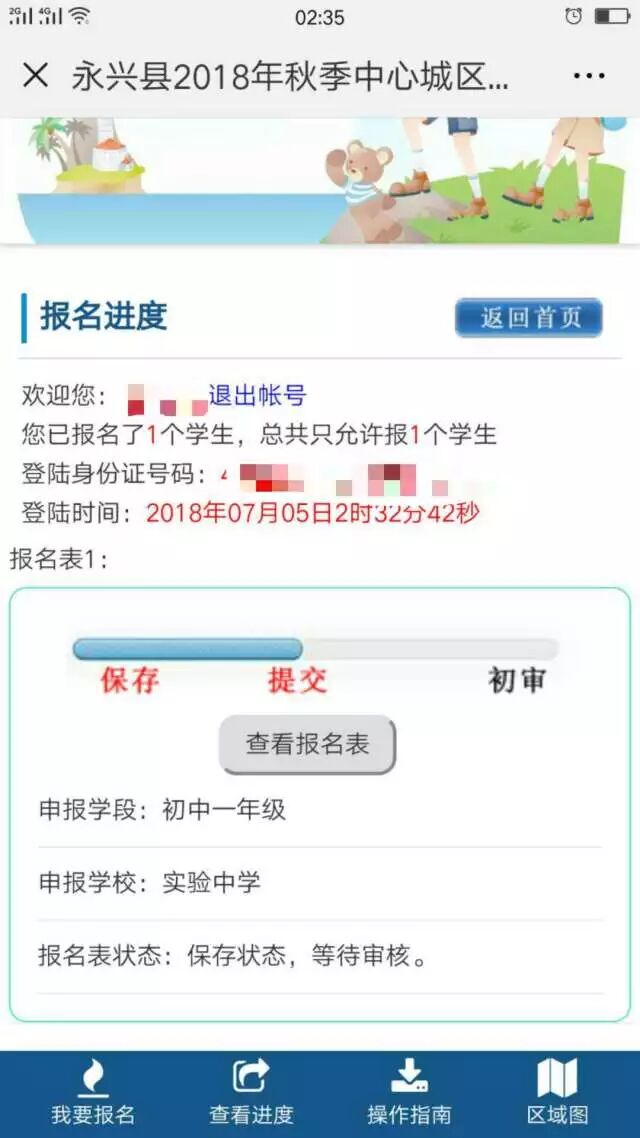家长可以点击查看进度,了解网上报名情况。
