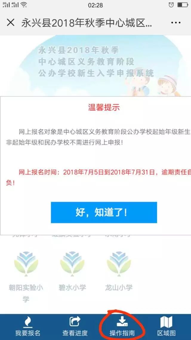 永兴县2019年秋季中心城区义务教育阶段学校新生入学网上报名操作流程