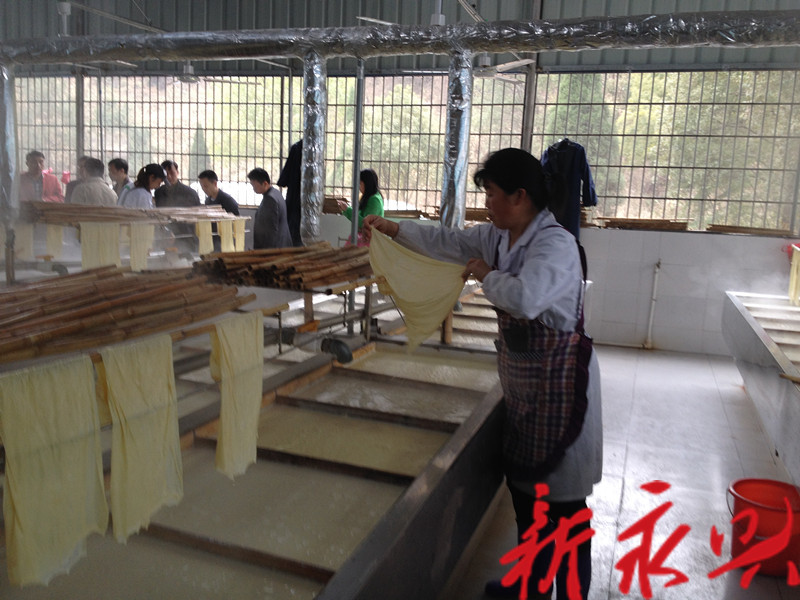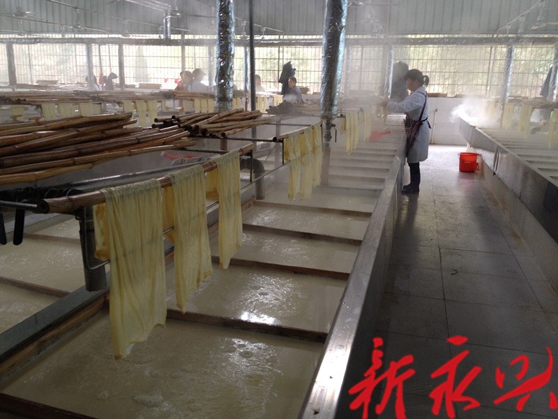 【永兴县融媒体中心11月27日讯】色泽金黄、通体剔透、耐煮不糊的“马田腐竹”是永兴县马田镇的地方名优特产。在酒店餐馆里,“马田腐竹”是抢手的招牌菜,而在脱贫攻坚中,腐竹加工亦是产业扶贫的“排头兵”。