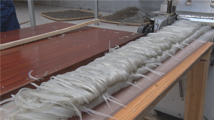 红薯粉的制作需要经过清洗、粉碎、过滤、蒸煮、切条、晒干等六道传统工序,每个过程都需要经验丰富的工人细心精准把控。除了帮助贫困群众在厂房务工,合作社还统一收购村民们自家种植的红薯,要是自家种植的红薯遇到销路难题,都可以交由合作社统购统销。