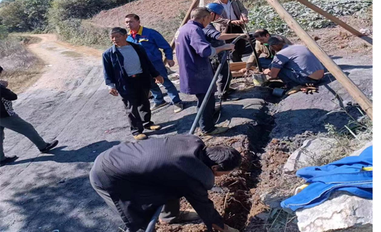 溪尾村深塘组地处永兴县西部山区,地势较高,常住人口200余人,入秋以来,因天干少雨,原饮用水源已经不能满足居民生活用水。驻村工作队通过走访了解这一情况后,组织村民召开村民代表大会,组织乡贤积极捐赠,同时向相关部门争取资金2万元,经过各方论证选址,在后山腰上掘了一口150米深的深井,铺设抽水电缆,把水从深井中抽入到离水井200米高处的储水池中,再通过水管引流到村民家中。经过半个月的努力,甘甜清冽的山泉水汩汩流到村民家中,村民无不欢欣鼓舞。