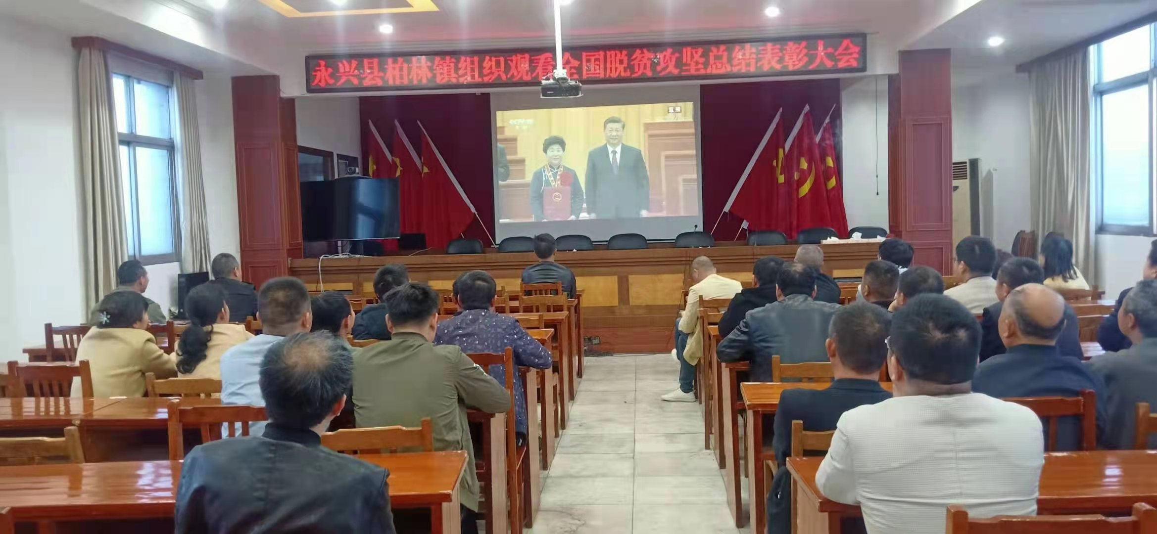 永兴县柏林镇组织收看全国脱贫攻坚总结表彰大会。