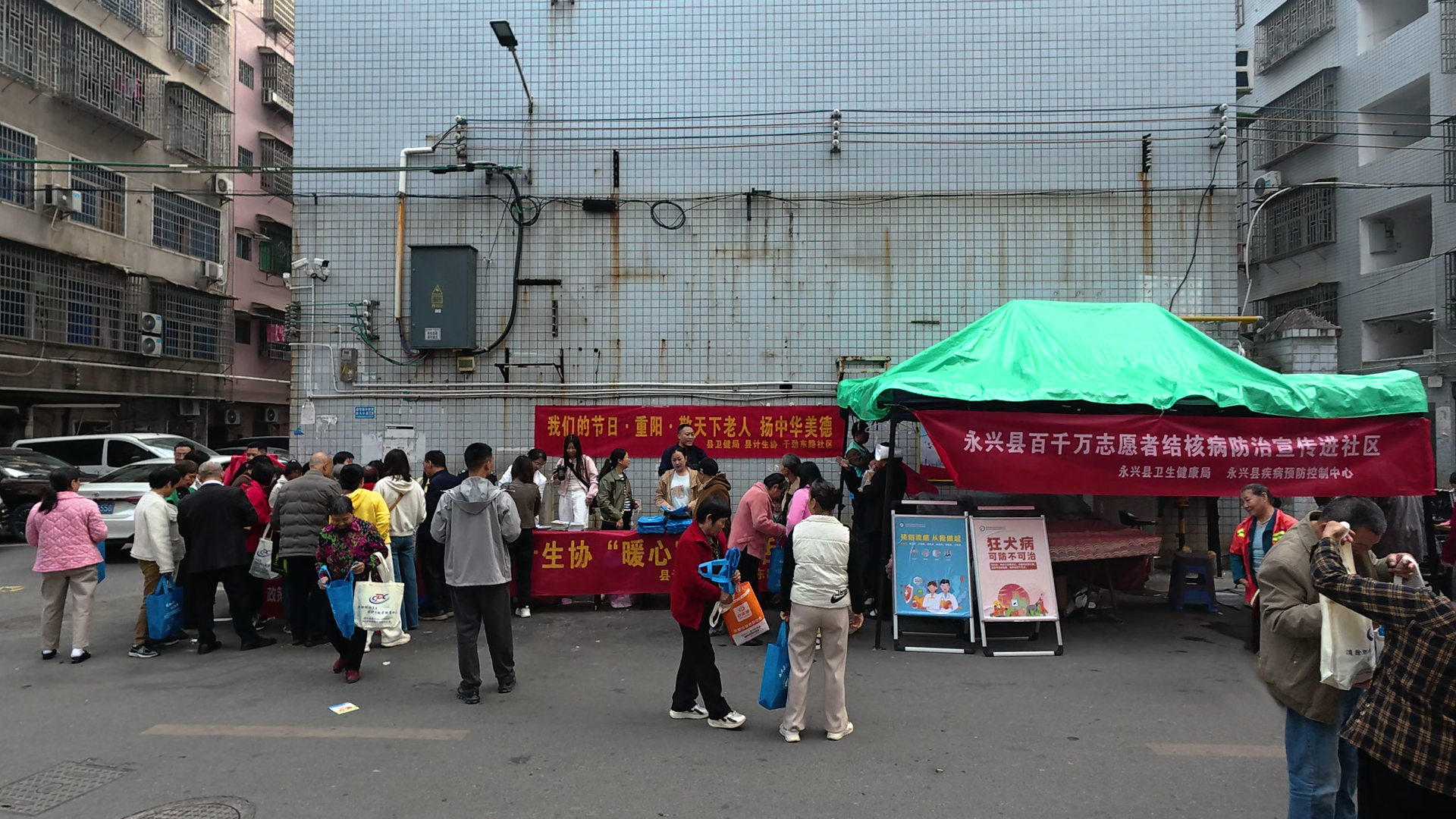 湖南日报·新湖南客户端10月29日讯(通讯员 郭伊凡)10月29日上午,永兴县便江街道干劲东路社区联合县计生协会、县司法局、县医保局等多家单位,在嘉美花园小区开展“我们的节日·重阳·敬天下老人,扬中华美德”老年人健康关爱公益活动,以多元服务为社区居民送上浓浓的节日关怀。