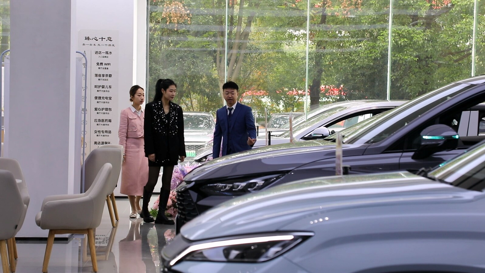 在县城的一家汽车4s店里,不少消费者正在看车。过去,从提车开发票、买保险到去车管所验车上牌,消费者需要花费至少大半天的时间才能把手续办完。现在有了新车上牌“一件事”服务,车主通过“交管12123”客户端就能办理缴税、投保、选号等业务。后续牌照直接邮寄到家,业务办理全程电子化。