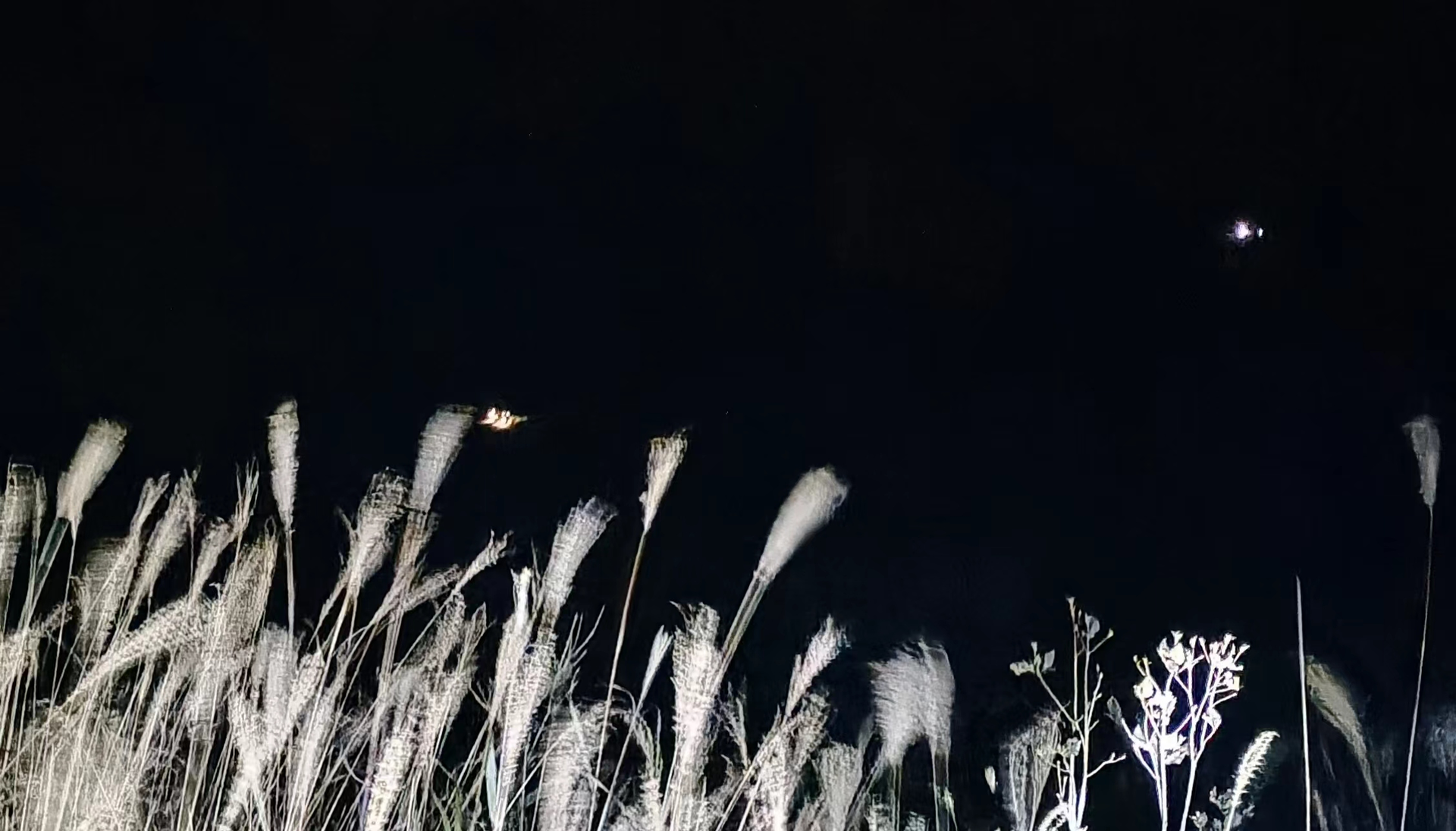 山风卷着芦苇丛沙沙响,我们走一阵就回头望,远处夜爬人的手电筒像星星落在山间,忽明忽暗。累到极致时,我们干脆躺在路边的芦苇丛里,一抬头,竟撞进了满目的星河——天空像被墨染过,星星密得能数清明暗,还有流星拖着尾巴划过天际。爱人躺在我身边,艳和我头靠头,我对着星河悄悄许愿:愿身边这两个最重要的人,往后的日子,都能像此刻这般,眼里有星光,身边有依靠。