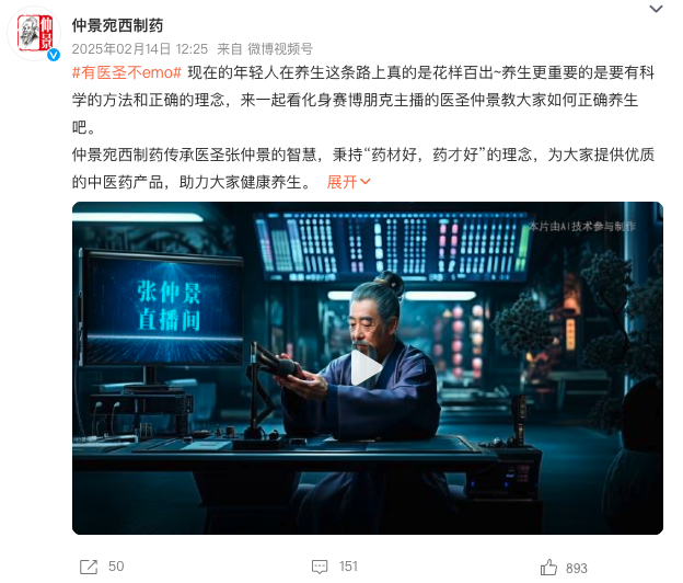 品牌借助一支轻松幽默的AI视频,让医圣张仲景“穿越”现身,将《伤寒杂病论》中“疏肝理气”的古典哲学,转译成应对职场焦虑与生活压力的“现代药方”。