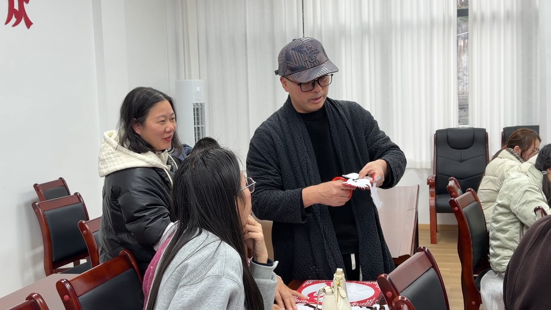 在县总工会,40余名干部职工齐聚一堂,在缕缕红纸与剪刀翻飞间,感受非遗魅力,手工讲师手把手示范剪刻的基础技法,耐心纠正学员操作中的细节问题。职工们热情高涨,专注练习,相互交流技巧,活动室里剪刀开合声与欢声笑语交织。