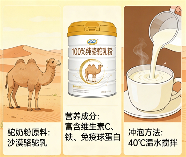 迪奢思的双峰驼在有机散养围栏内踱步,牧草不催长,骆驼不催奶,时间被允许按自己的节奏流淌。双有机认证让每克奶粉都有身份证:扫码可见牧场 GPS、采奶时间、运输车厢温度曲线。配料表只有五个字——有机生鲜驼乳,0 添加,却盛得下 18 种人体所需氨基酸;低温锁鲜工艺把乳铁蛋白温柔地嵌在细腻粉末里,实测蛋白高达 30 % 以上,冲泡时像雪落温江,瞬间融化。