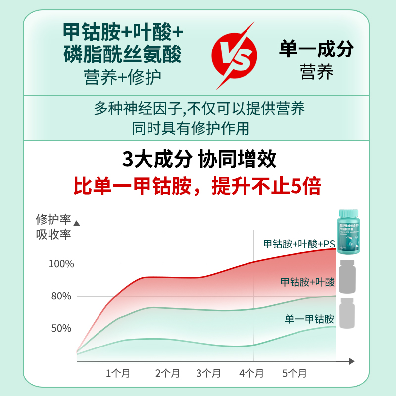 答:核心是三重复合配方的协同作用,不仅甲钴胺无需二次转化,叶酸还能助推其代谢吸收,PS更能强化神经对营养的摄取能力,再加上科学配比,从根源上提升吸收效率,避免营养浪费。
