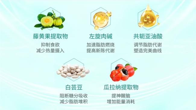 减脂“闭环”方案是现代体型管理的里程碑革新。该方案以五项专利核心成分组合,精准对标中年发福、产后型、疲劳型、顽固型、药物型、遗传型六大肥胖类型。协作机制涵盖藤黄果抑制热量入口,左旋肉碱强化脂肪代谢,共轭亚油酸直达脂肪分解,白芸豆阻断碳水吸收,瓜拉纳激活能量输出。这一机制不仅实现热量摄入、分解、阻断全流程管理,更针对复杂体质匹配出安全、稳健、定制化的方案。