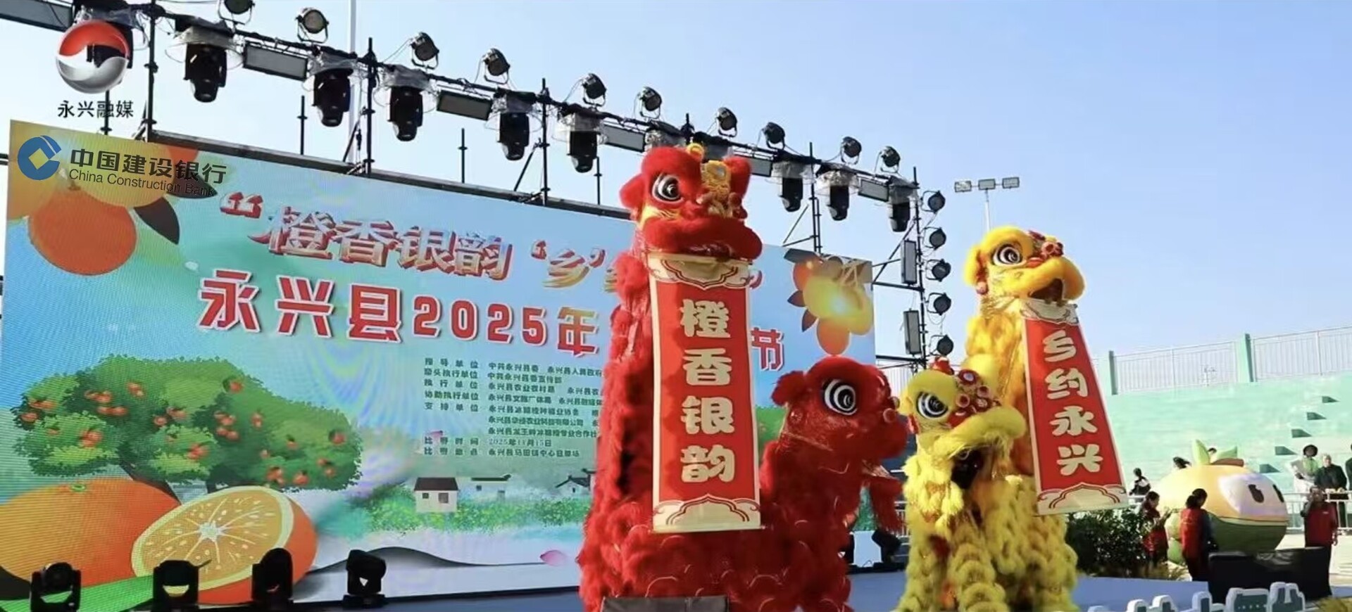 作为本次活动的重要支持单位,永兴建行紧扣活动主题,将金融服务与地方特色产业发展深度融合。活动现场,建行宣传片在12米×4米的LED主背景屏上滚动播放,全方位展现建行服务实体经济、助力乡村振兴的责任担当与专业实力,吸引了众多果农、企业代表及市民驻足关注。