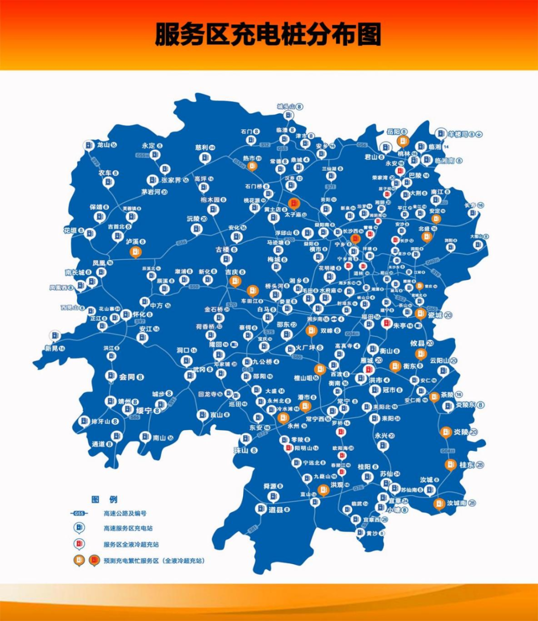 G55二广高速(4对):常德、邵阳、九嶷山、蓝山服务区。