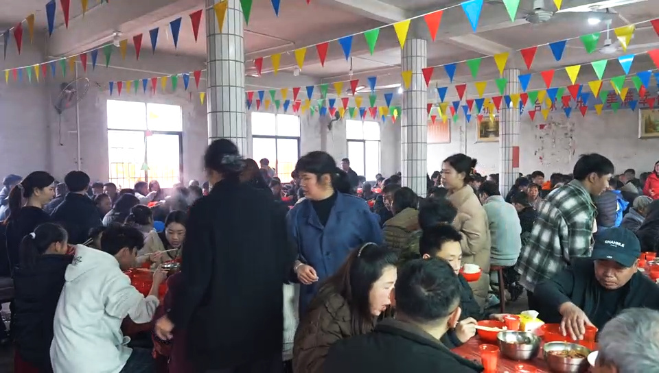 “村晚”结束,马上又是一场重头戏——团圆饭。村民介绍,除了过年,每逢妇女节、重阳节,村里都会积极筹办这样的团圆宴,为的就是把大家凝聚在一起,在龙灯精神的引领下,团结一心加油干,把小家的日子过红火,把村子建设得更美丽。