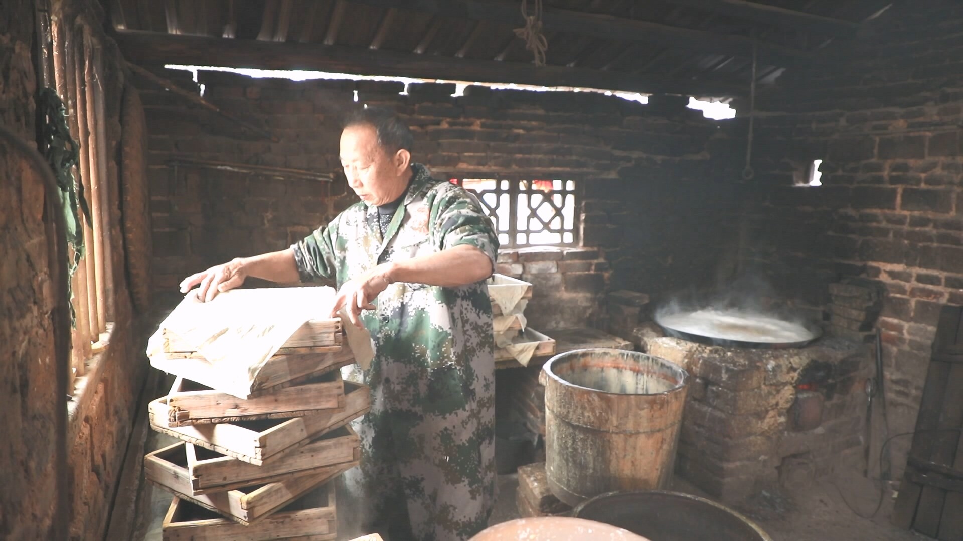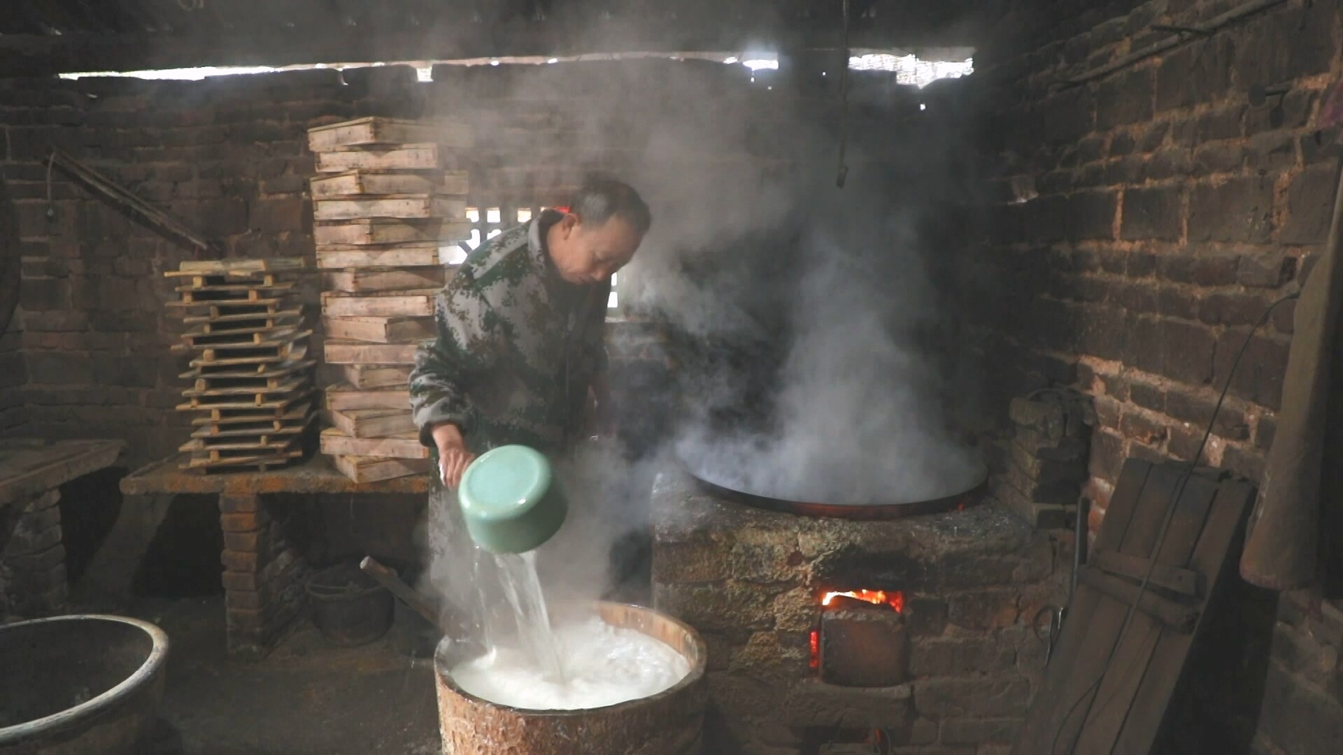 高亭司镇高亭村村民刘田:“这是打浆。热水把这个浆烫好,等下就要过浆。”