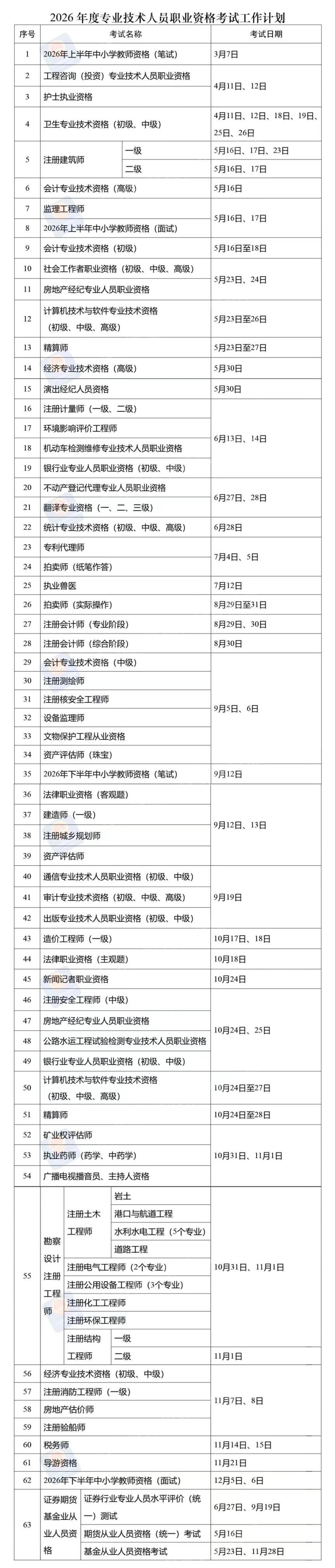 职业资格考试时间表已公布!