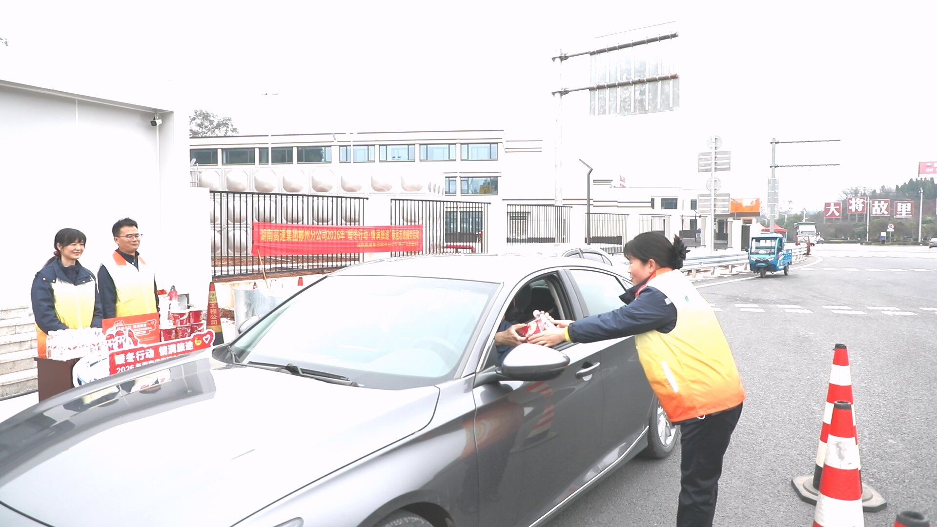 考虑到春运期间司乘人员长途奔波,易因道路拥堵耽误用餐、出行不便等实际情况,永兴高速收费站同步启动“暖冬行动”,在收费站外广场搭建便民服务台,将暖心关怀直送群众身边。服务台内备足热水、方便面、热茶等各类补给物资,站内工作人员与志愿者主动上前,为滞留群众递上食品与饮用水,送上暖心的节日问候;同时耐心解答路线咨询,用专业与贴心为群众出行保驾护航。