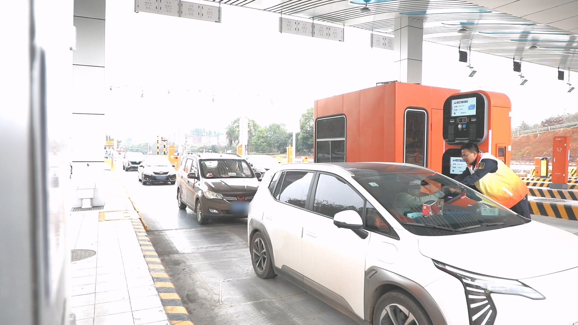永兴马田中心收费站站长冯正强:“春节假期我们全员在岗,动态增开车道。从流量数据上看,最高峰在免费最后一天23号。为确保精准保畅,提高通行效率,动态开启全部收费车道,安排专人在收费广场前沿进行疏导,确保车辆快进快出。”