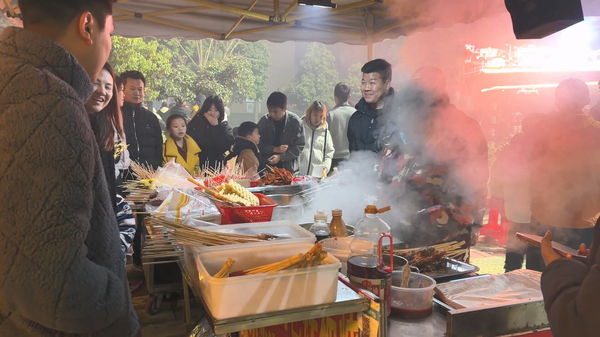 铁板烧商家陈艳群:“我在这里卖烧烤有十多年了,最看重的就是一年一度的元宵节。每到这天现场都是人山人海,十分热闹,也是生意最火爆的一天。”