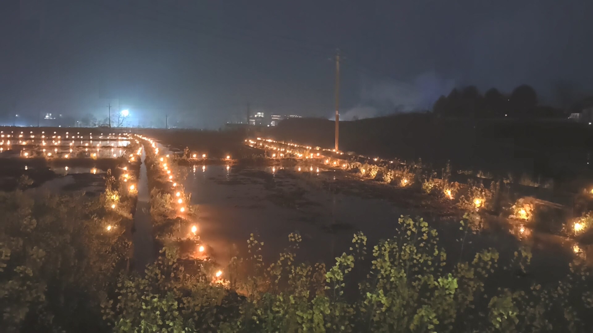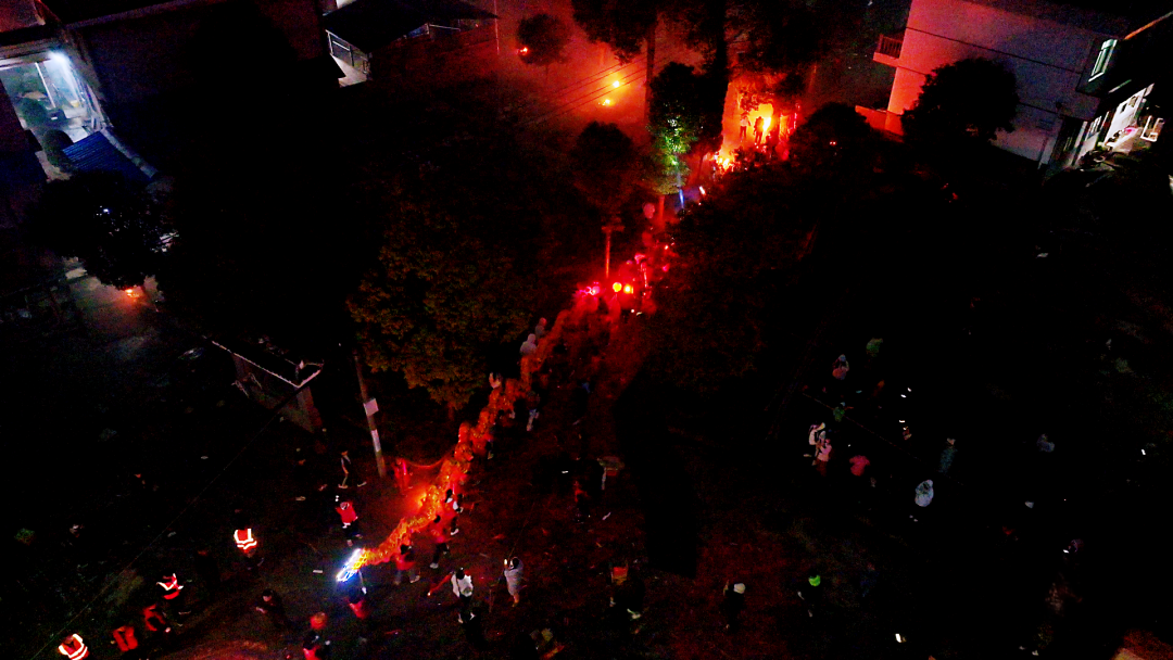 随着夜色渐深,活动也渐入佳境。各村组的龙灯队伍如繁星点点,在田间地头、村落之间交汇穿梭。从高空俯瞰,一条条流动的“火龙”在黑夜中勾勒出一幅幅生动的民俗画卷。倒灯仪式结束后,高亭司镇上空瞬间被绚丽的烟花秀点亮。一簇簇礼花腾空而起,如金菊怒放、星河倾泻,与地面尚未散去的龙灯香火交相辉映,将元宵之夜推向最高潮。人群爆发出阵阵欢呼,纷纷举起手机定格这璀璨瞬间。