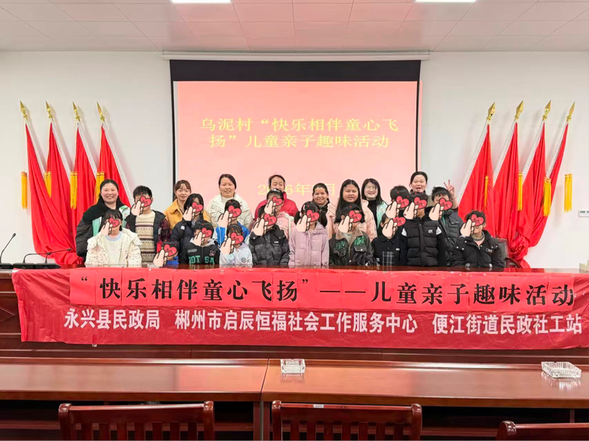湖南日报·新湖南客户端3月10日讯(通讯员  胡超嫦)为关爱农村少年儿童,3月8日,永兴县便江街道民政社工站在街道办及郴州市启辰恒福社会工作服务中心指导下,联动乌泥村开展“乐成长·童心飞扬”亲子趣味活动,用爱心陪伴为孩子们搭建快乐成长舞台。