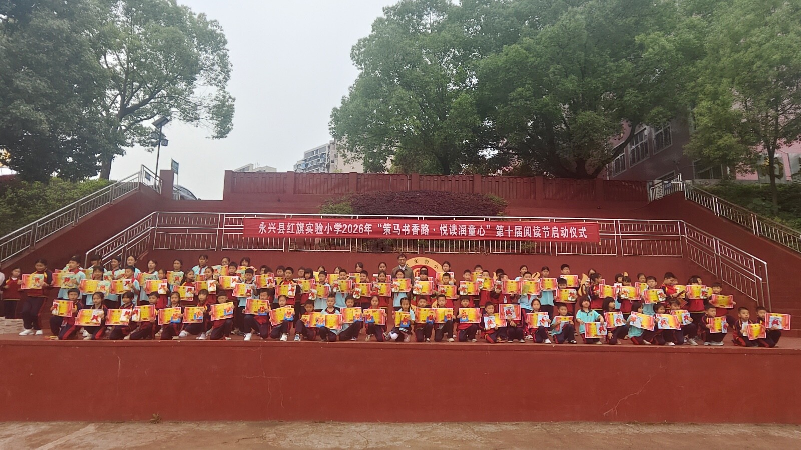 湖南日报·新湖南客户端4月21日讯(通讯员  许灵香)4月20日,永兴县红旗实验小学举行“策马书香路·悦读润童心”第十届书香阅读节启动仪式,全体师生参加。