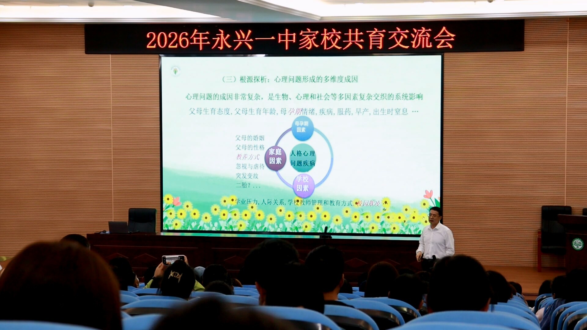 湖南日报·新湖南客户端4月21日讯(通讯员  李璋瑞 胡洪丹)4月19日上午,2026年湖南省重点民生实事心理健康和家庭指导服务“向阳花”行动走进永兴县第一中学。在学校的蓝色报告厅内,一场面向高一学生家长、主题为“读懂高一少年心,赋能青春成长路”的专题讲座温暖开讲。